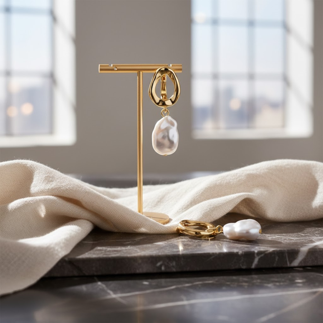 Hedvig | 18K Gullbelagte Øredobber med Naturlige Barokkperler